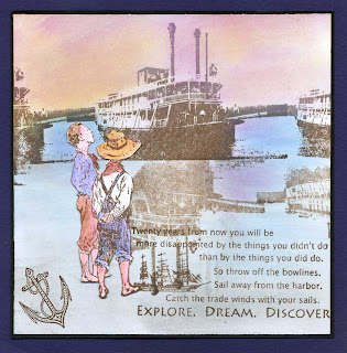 well I almost didn't post this as it's a bit of a mess, I've messed about all night trying to do something for the Alpha/dictionary challenge, nothing inspired me about the letter O. I tried to do something with an oak tree stamp and leaf stamp, binned all those attempts, spent ages rooting about in stamps ,nothing appealed, finally found my steampunk owl and decided he would have to do! I started to colour him with distress markers which I have had for a while and never used but they were a disaster so he's a bit of a funny colour, couldn't get them to blend at all , decided I don't like them and will go back to my favourite colouring medium of water colour paints and pencils which I've used for years. Anyhow here is my fat book page for the Craft Barn Alpha/dictionary challenge Letter O